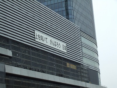 そうそう、建設途中の建物には、こんなスローガンが