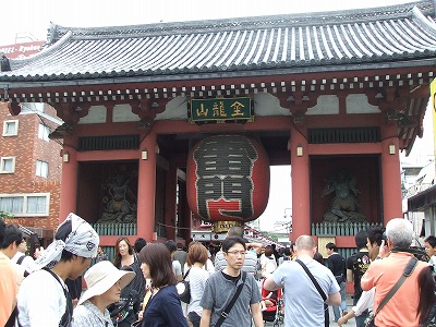 雷門前に到着、観光客が減っているといってましたが、結構な人です。外国の方もいっぱいいましたよ。