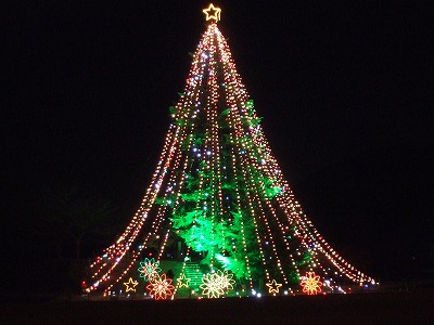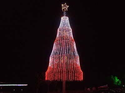 まずはバス停のある方まで進むと見えるツリー型のイルミネーション