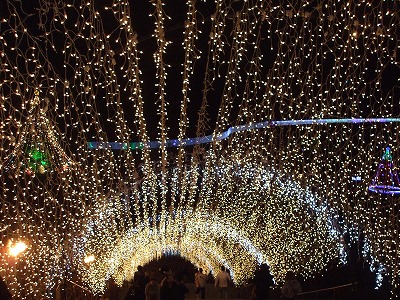 ツリーへ行くための階段は、イルミネーションのカーテン