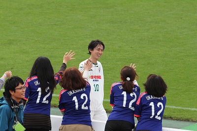 このピッチサイドの写真に自分が写っていたのでビックリしました!! 良い記念になりました。ありがとうございます.˚‧º·(´ฅωฅ`)‧º·˚. そして…ご本人の撮影でないとのことですが、もし他にもハイタッチの時の写真があれば見せていただくことは可能でしょうか!? もし良ければ次回コメントにメアド載せますので、よろしくお願いします(o^^o) | Re:はじめまして