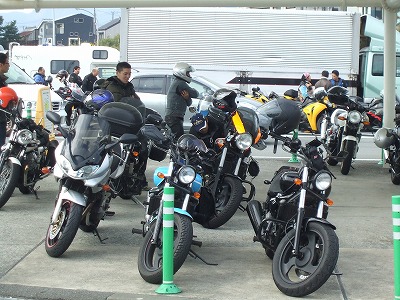 集合時間には余裕で到着、いつものように、バイクの展示場並みのバイクの多さです。