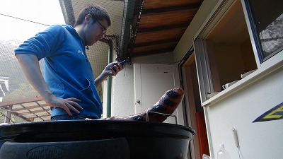 ま、気を取り直して、雨対策のブルーシートを張って、ここから第2部の開始です!!
