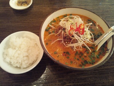 ほど良く辛いスープにひき肉がどっさりのラーメンです。