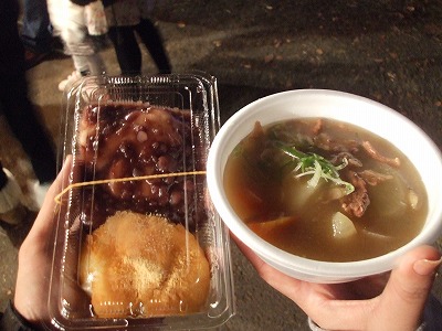 写真は、搗き立てのお餅と豚汁。他にも、シロコロなどを食べました。