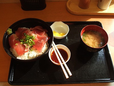 24時間営業している食堂で、朝から『焼津まぐろ丼』を豪勢にいただきました。